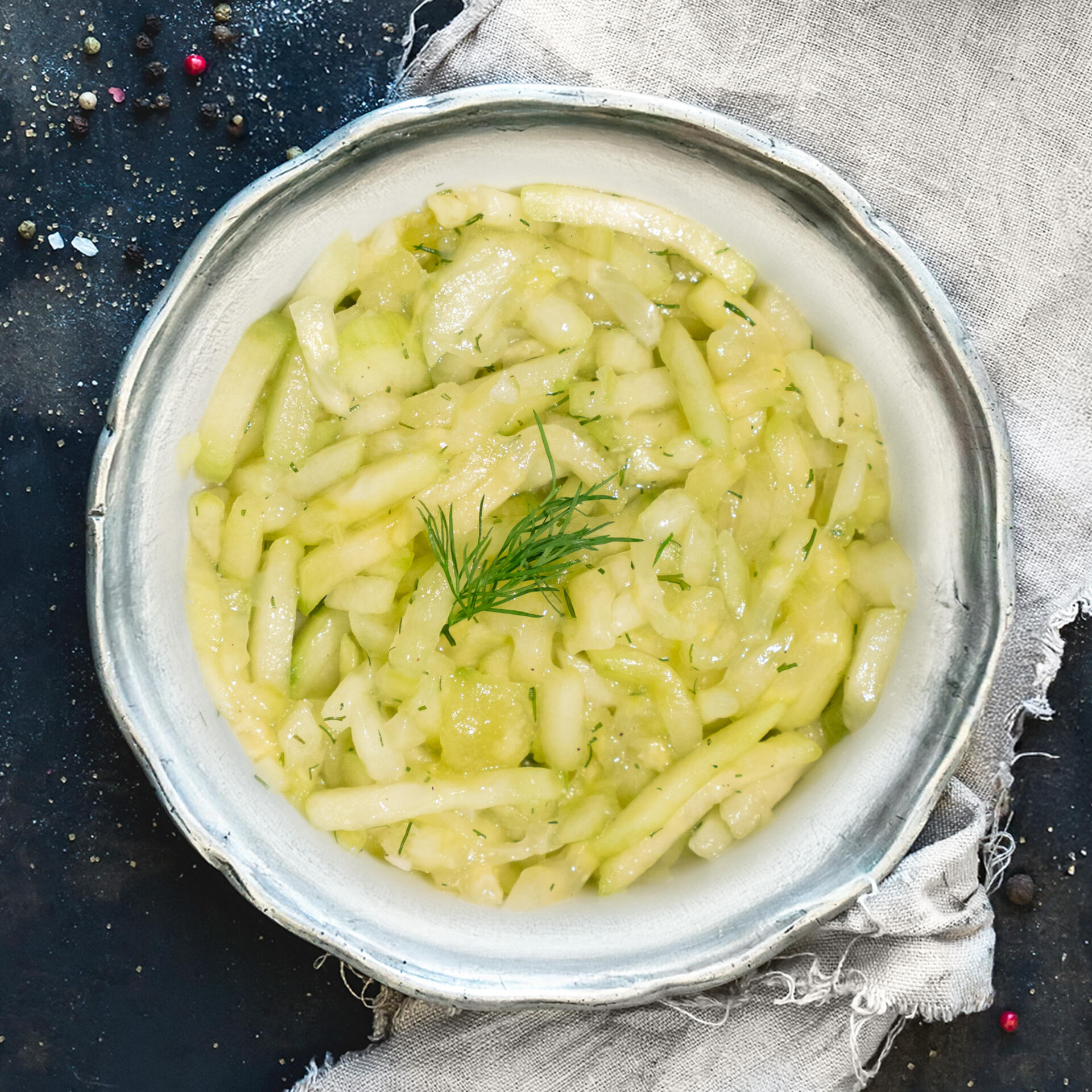 Pur & erfrischend: Seebacher Gurkensalat natur mit knackigen Gurken, feinem Dressing & frischem Dill. Der natürliche Genuss!